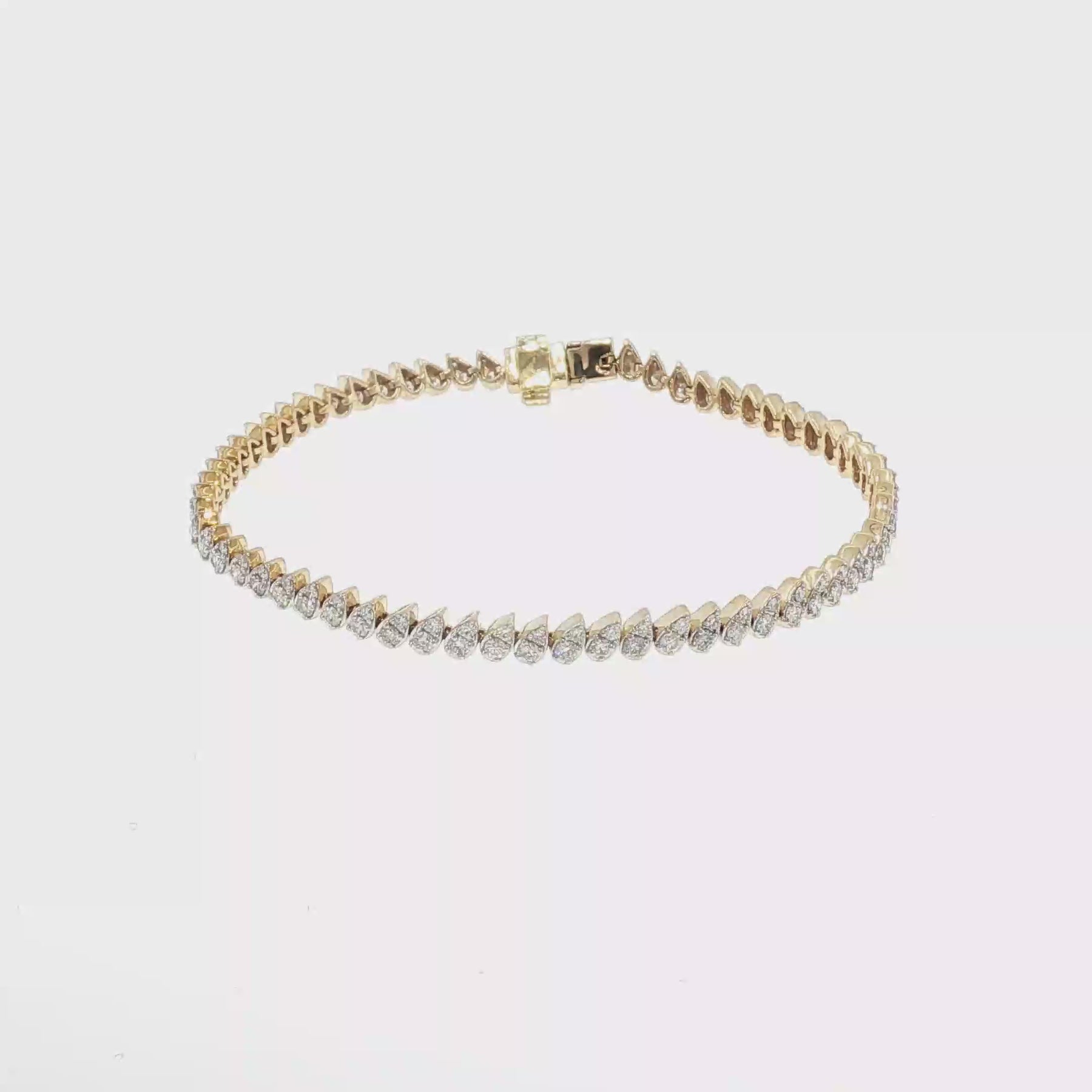 Timeless and versatile, a tennis bracelet is a must have item for any jewellery wardrobe. Crafted in 9ct yellow gold, this unique design features a total of 144 baguette cut diamonds in varying sizes creating a playful and dynamic look. The total diamond carat weight is 1.25ctw. The bracelet measures 18.5cm in length.