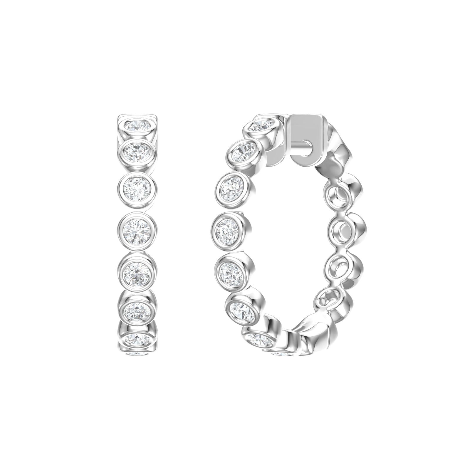 Bezel Set Brilliant Cut Diamond Hoop Earrings