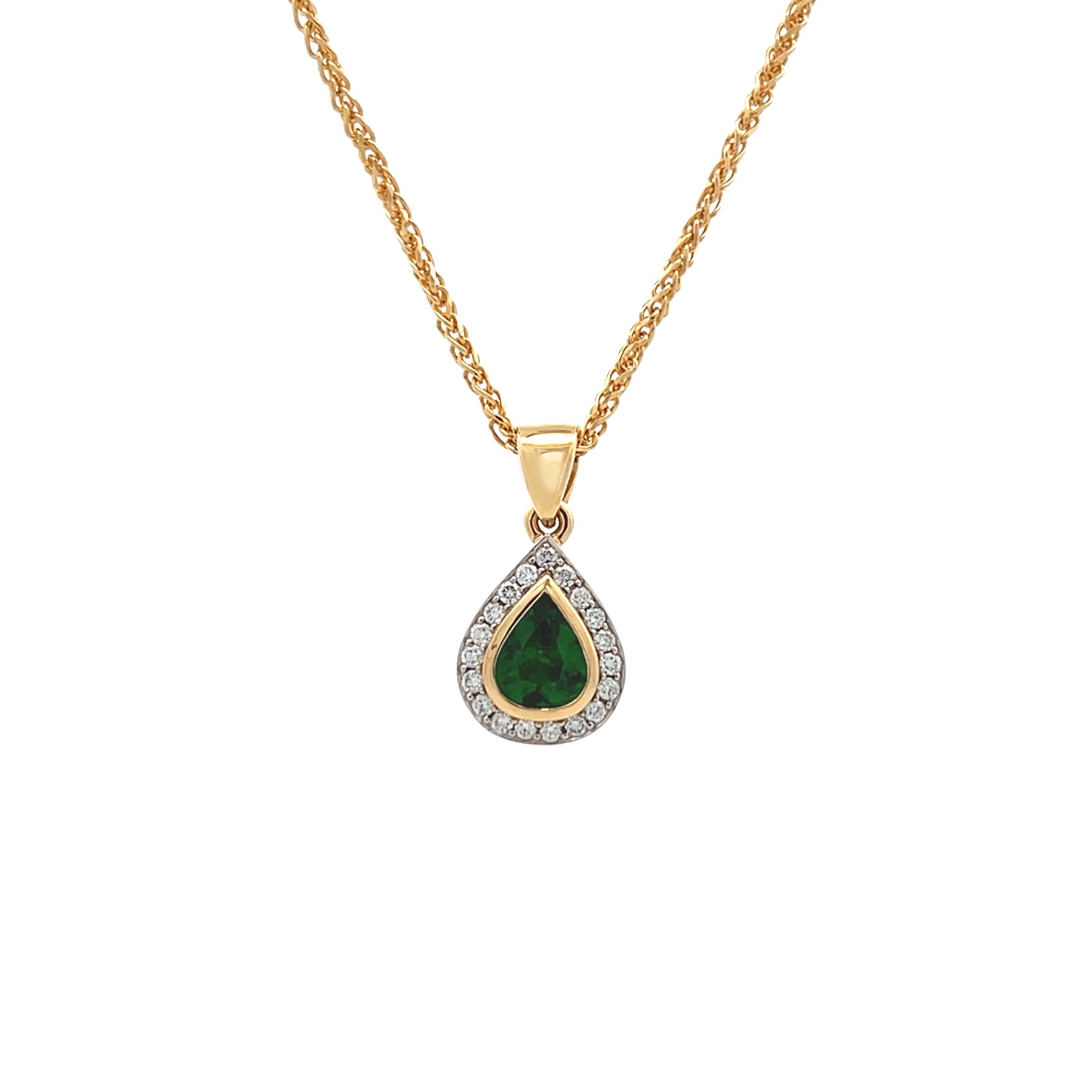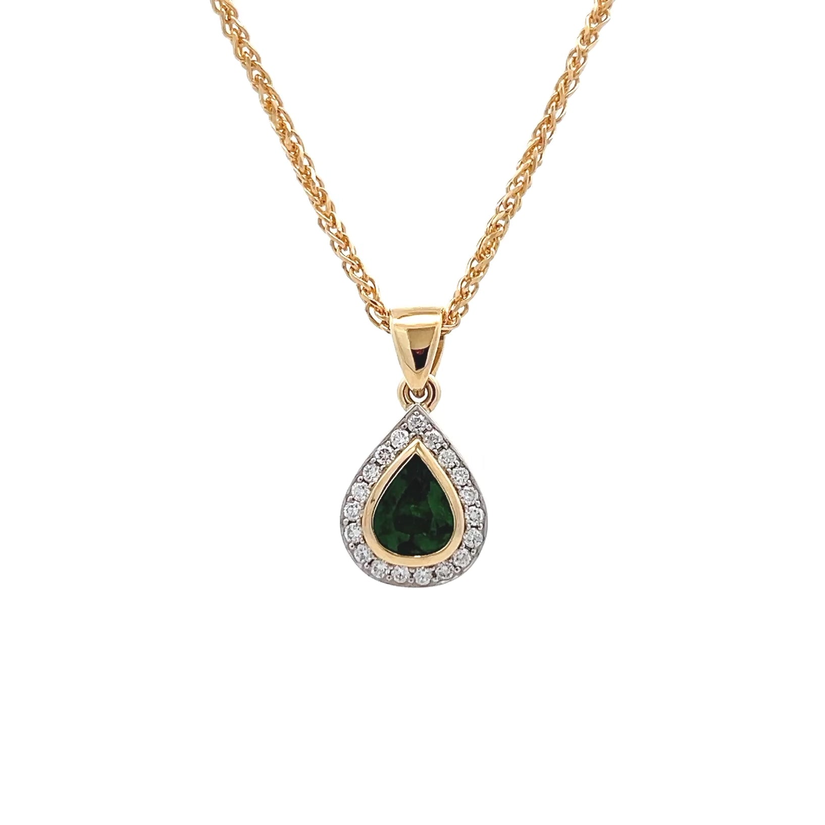 Aurelia: Emerald and Diamond Halo Drop Pendant in Platinum and Yellow Gold | 1.08ctw