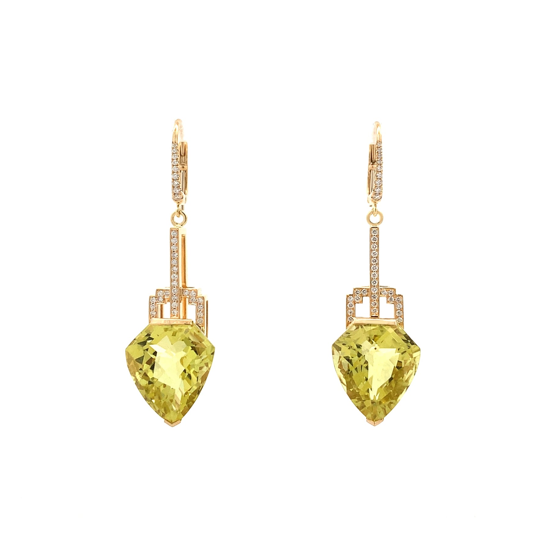 Deco-Style Citrine and Diamond Drop Earrings