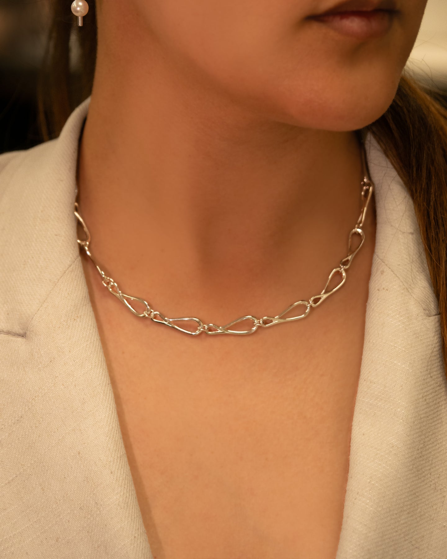 Echoing the musical rise of crescendo, this chain captures a sense of gradual strength and energy. Crafted in sterling silver, the links create a dynamic silhouette that is contemporary and empowering. Designed by The Village Goldsmiths in house, award-winning jewellery designers, each piece from the Symphony collection is inspired by rhythm, flow, and emotion of musical expression