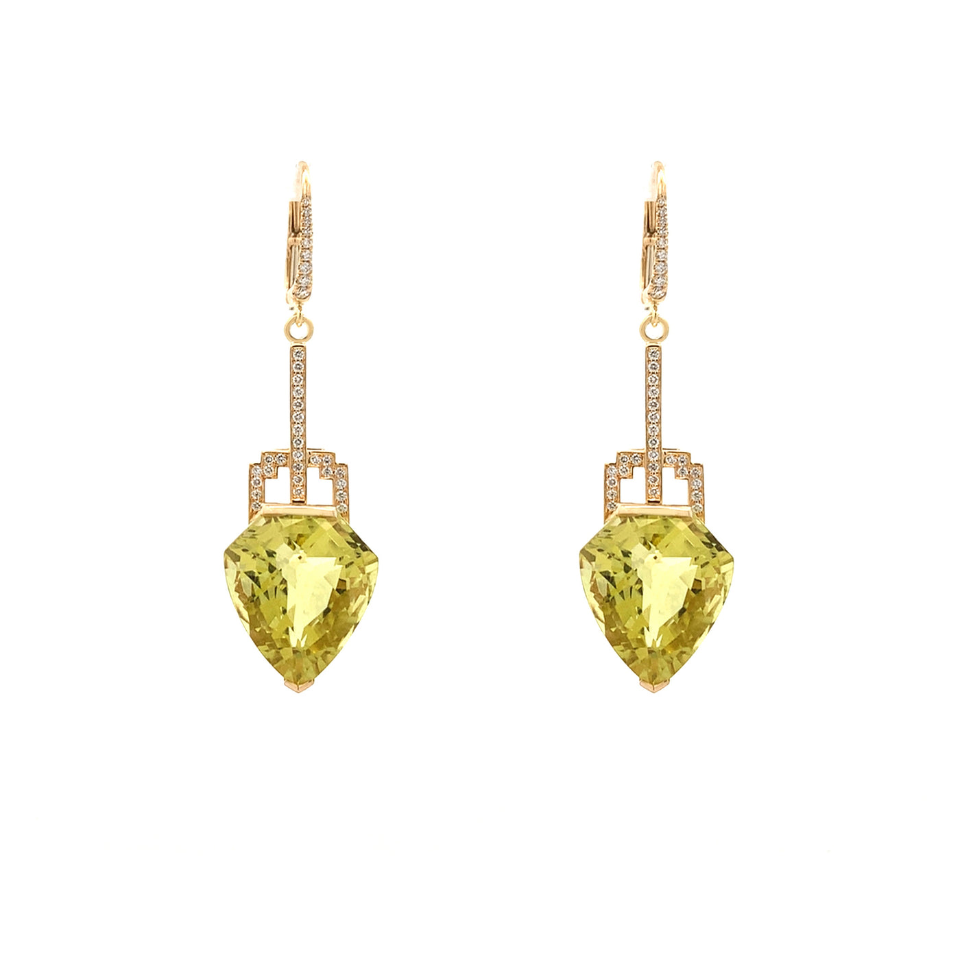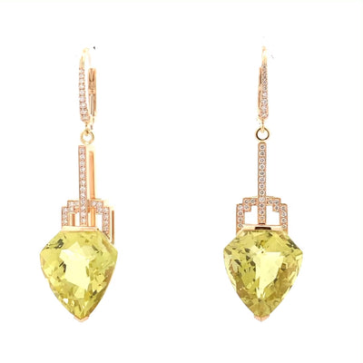 Deco-Style Citrine and Diamond Drop Earrings