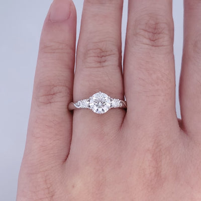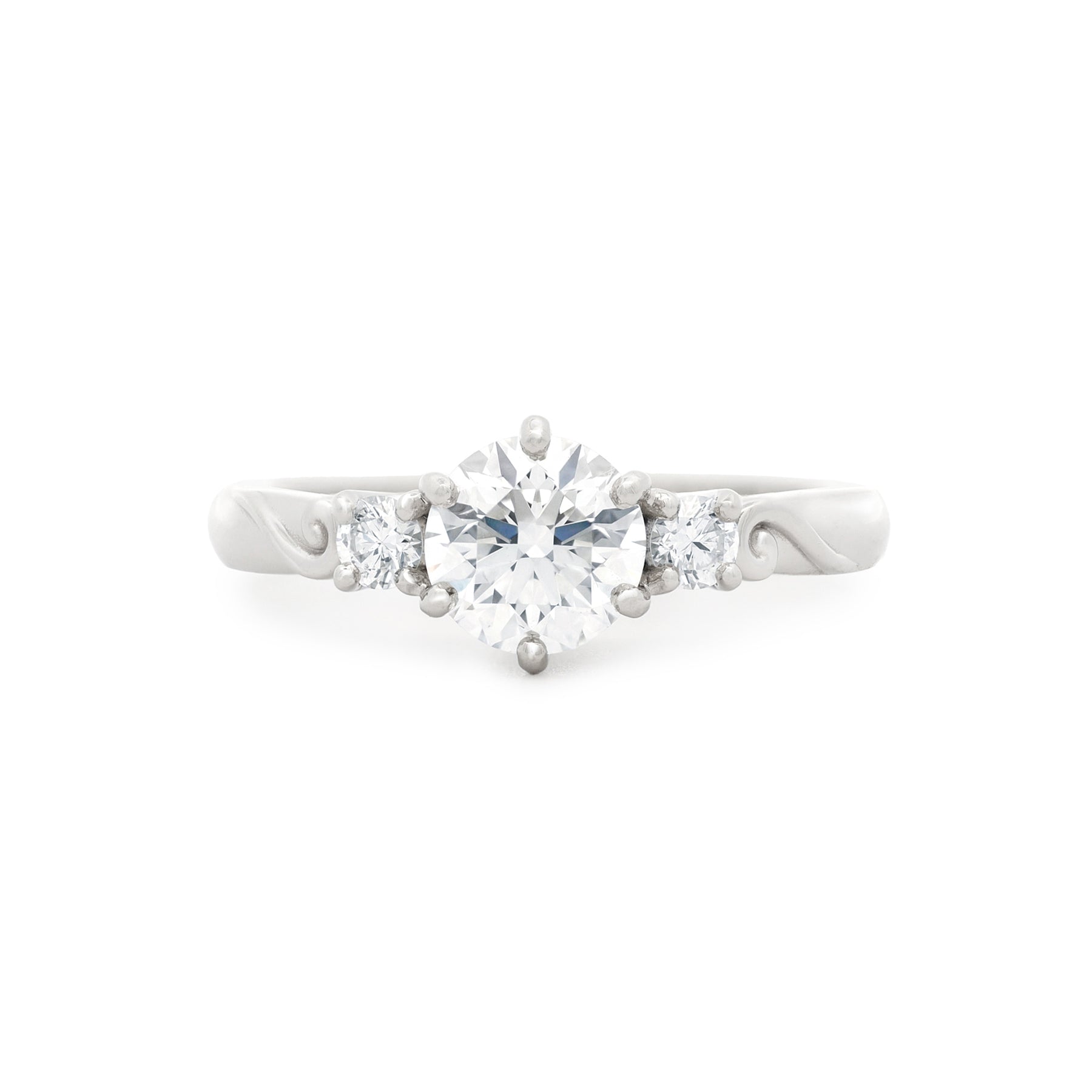 Crafted in platinum, this ring features a 1.01ct brilliant cut diamond of H colour, VS2 clarity with a triple excellent cut certified by GIA and is paired with two side diamonds totalling 0.14ct.