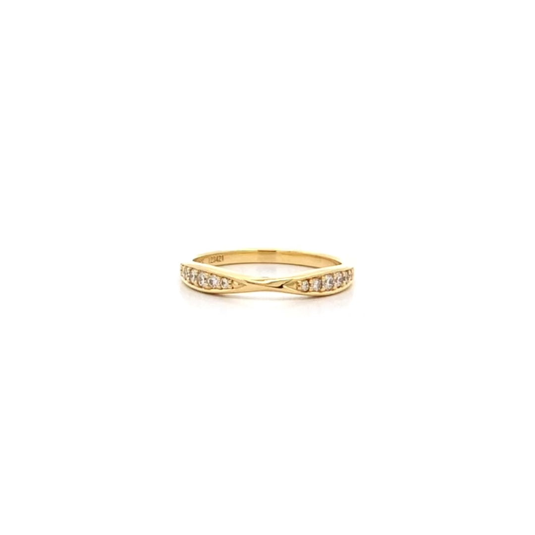 Brilliant Cut Diamond Set Cinched Ring in Yellow Gold | 0.19ctw