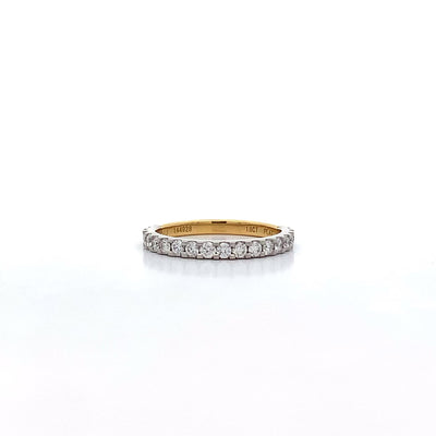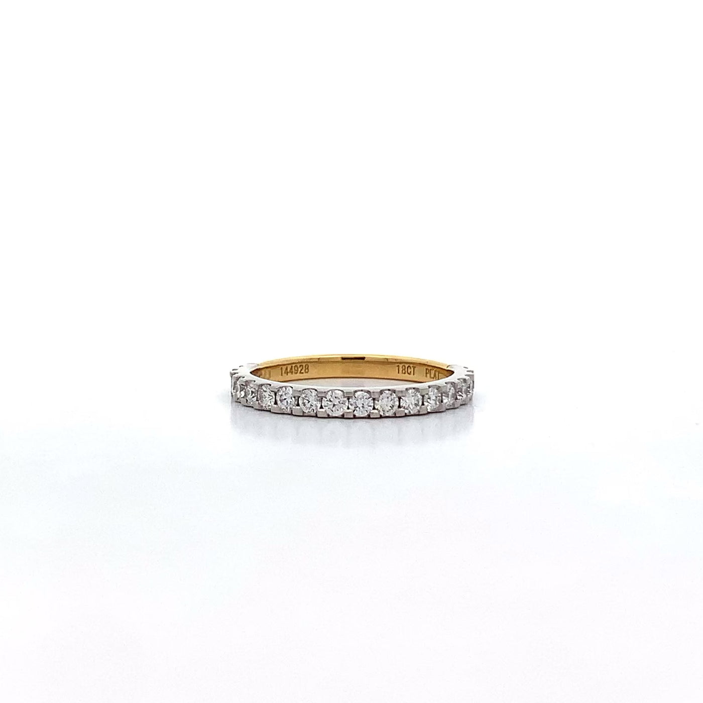 This scallop set diamond ring has 18 brilliant cut diamonds beautifully set along the platinum and 18ct yellow gold band. The ring has a total diamond weight of 0.49ct, set with diamonds of D-G colour and VS-SI clarity.