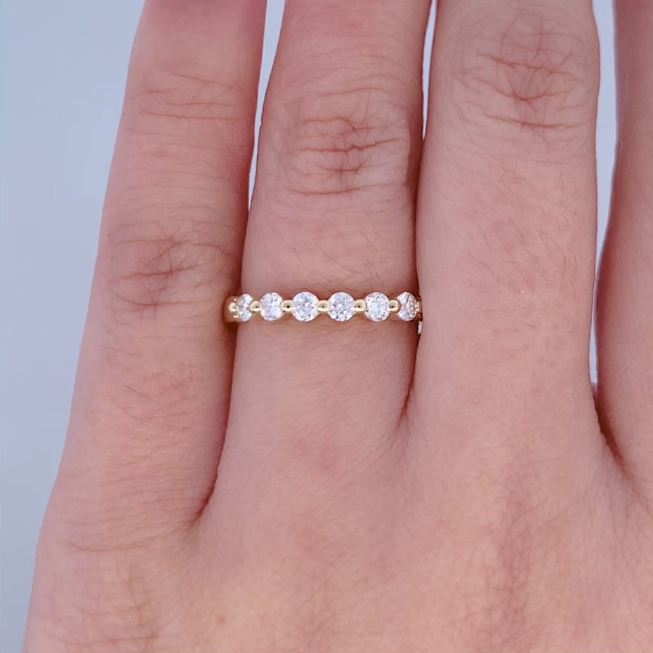 Elegant and understated, this diamond ring is crafted in 18ct yellow gold and features seven round brilliant cut diamonds delicately arranged across the finger. The diamonds are of D-G colour and VS-SI clarity totalling 0.38ct. The ring is stunning worn on its own, stacked or paired with a wide range of engagement ring styles.