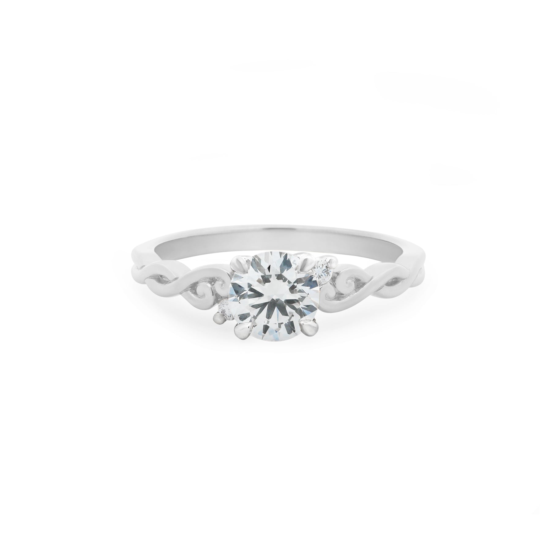 Diamond Solitaire, Diamond Engagement Ring, Engagement Ring, Cara, Narrative Collection, 18k, 18ct, Yellow Gold, Platinum setting, side diamonds, ring design, specialist, Maori, Polynesian, Celtic, jewellery, jewelry, front view