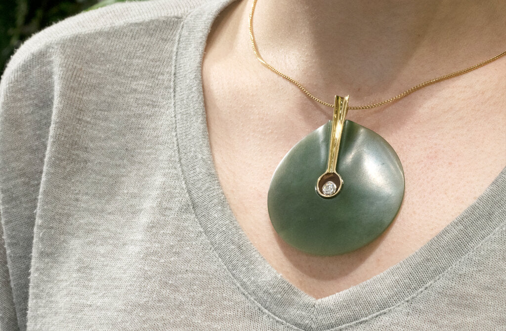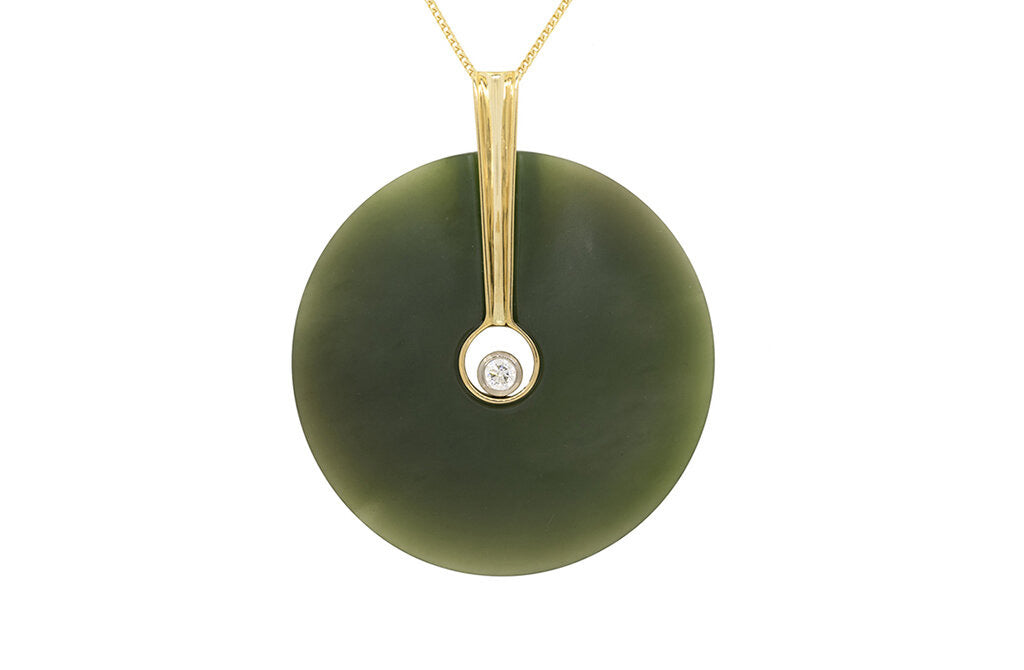 Green Circle Jade and Diamond Pendant