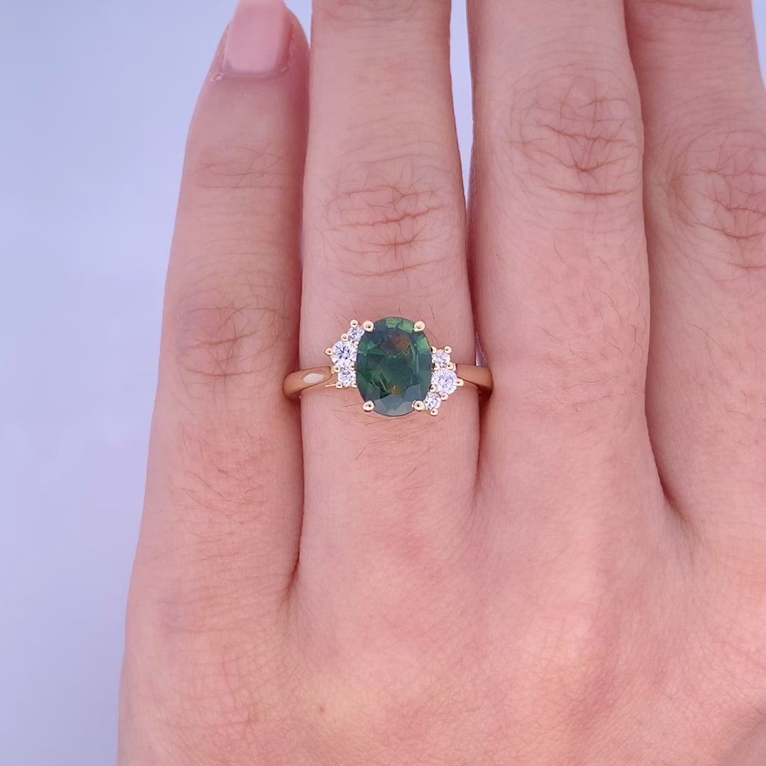 Green Sapphire and Diamond Cluster Ring