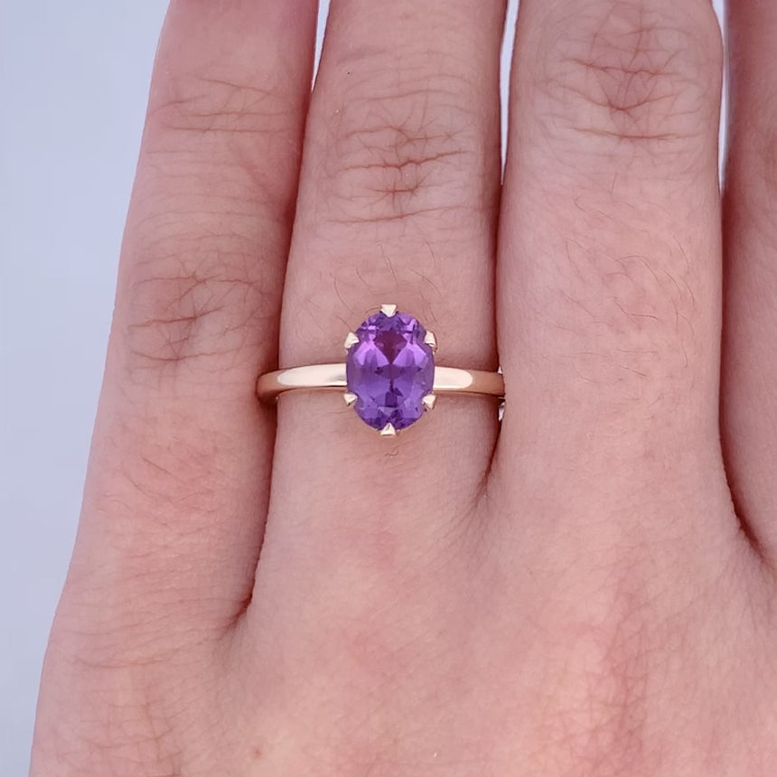 Oval Cut Amethyst Solitaire Ring