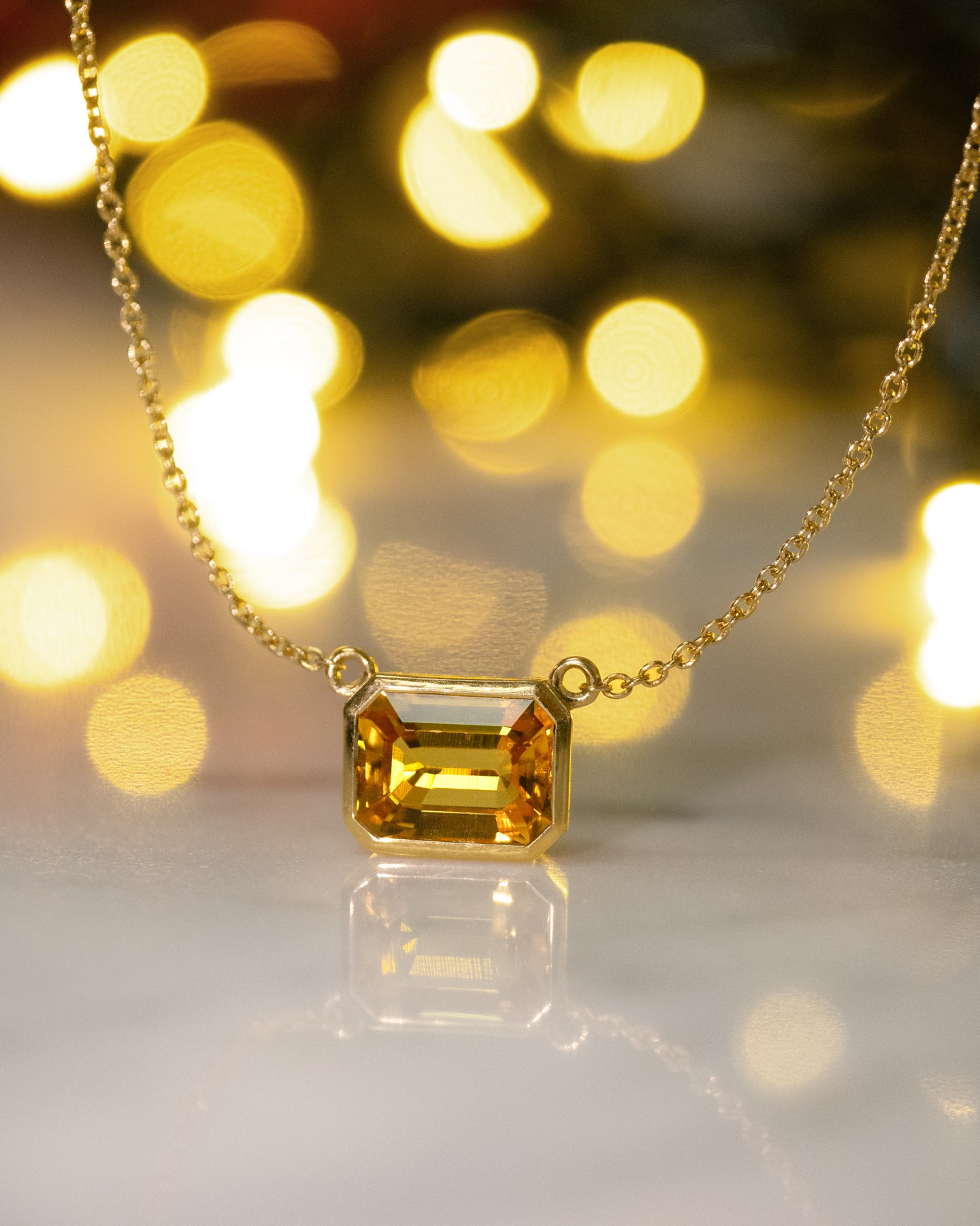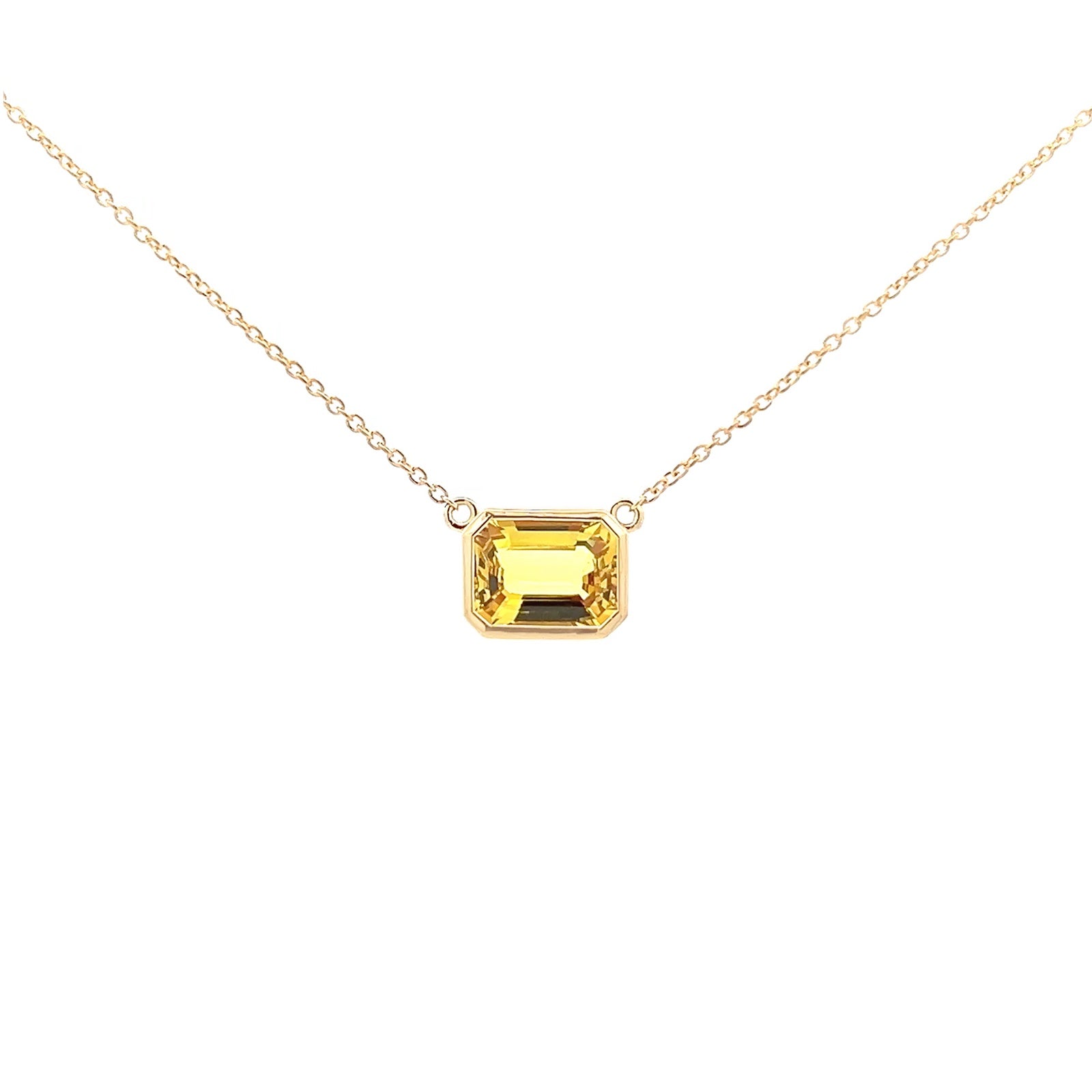 Octagonal Cut Yellow Sapphire Bezel Set Pendant